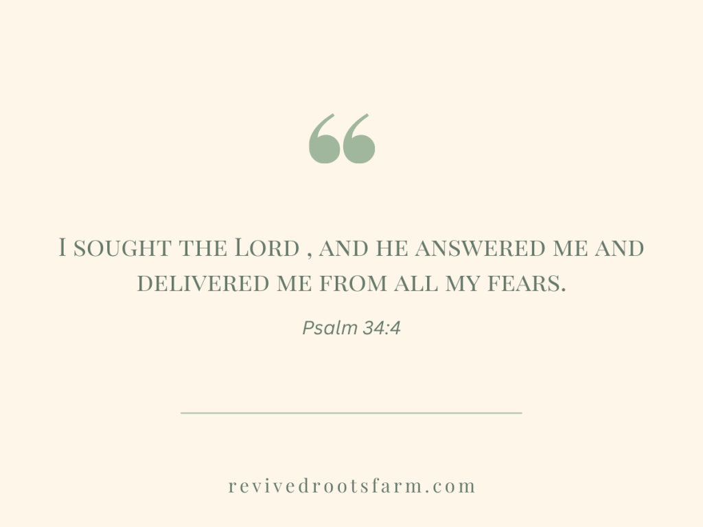 - Psalm 34:4 I sought the Lord, and he answered me and delivered me from all my fears.